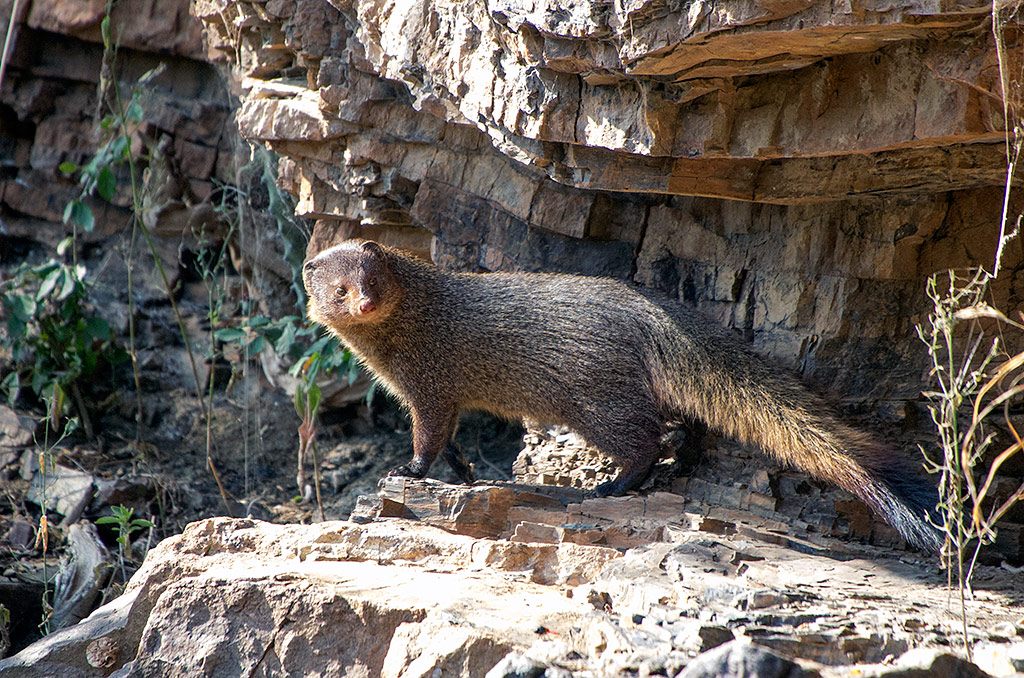 Mungon bor gärna i skrevor i klippiga områden eller i en hög bråte i bebyggt område. Den är som mest aktiv på dagen och sover på nätterna.