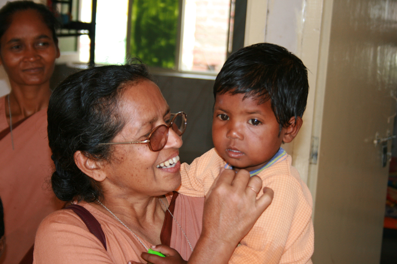 Halv 9 begav vi oss iväg i jeepen; 7 nunnor, chauffören och så jag. Första anhalten var ett barnhem ungefär efter en mil längs vägen mot Ranchi i Sooch Village; Ett helt nyöppnats barnhem under organisationen ”The Miracle Foundation´s” vingar. I den nästan färdigbyggda administrationsbyggnaden fick vi träffa chefen för projektet: Dr Manjeet Sing Pardesi. En mycket vältalig och till synes skärpt herre med stora visioner som han är på god väg att lyckas med. Barnhemmet är byggt för att kunna ta emot ca 200 barn och 50 spädbarn. Dessa skall fördelas på 20 byggnader där de bor tillsammans med 2 st husmammor som i praktiken fungerar som deras riktiga mammor. Husmammorna lagar mat till barnen, nattar dem och pysslar om dem rent allmänt. Just nu bor där endast 80 barn i de 6 färdiga husen. Barnen är oftast barn som lämnats av sina unga mödrar eftersom de fötts utanför äktenskapet men där fanns även en del från fattiga övergivna mödrar samt en liten del gatubarn som tagits om hand. Dr Pardesis vision är att barnen skall få en så pass förstklassig utbildning på barnhemmet så att de skall kunna få toppjobb i framtiden, eller som han själv uttryckte det: ” We are not bringing up rickshawpullers or plumbers, we are bringing up doctors and engineers”. I december är det meningen att allt skall vara klart men det vet man ju aldrig hur det blir med det. Det är ju trots allt Indien… Detta besök var dock ett riktigt lyckopiller för själen. Ett mycket välskött barnhem som låg mitt ute på vischan.