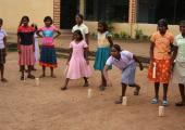 Efter ”Tea” var det dags att introducera kubb i Indien, eller i varje fall i Khunti. Jag hade nämligen tagit med ett kubbspel som jag gav bort till flickorna på hostellet. Snacka om att detta blev en succé! Efter en kort introduktion så kom spelet igång. De snappade upp tekniken nästan på en gång och redan efter ett par omgångar spelade de minst lika bra som vilken Svedala-bo som helst. Efter ytterligare ett tag hade de även lärt sig lite taktik och de följande timmarna blev till en väldigt uppsluppen stund ute på skolgården. Som tur var det uppehåll just då i monsunregnen.