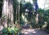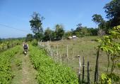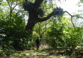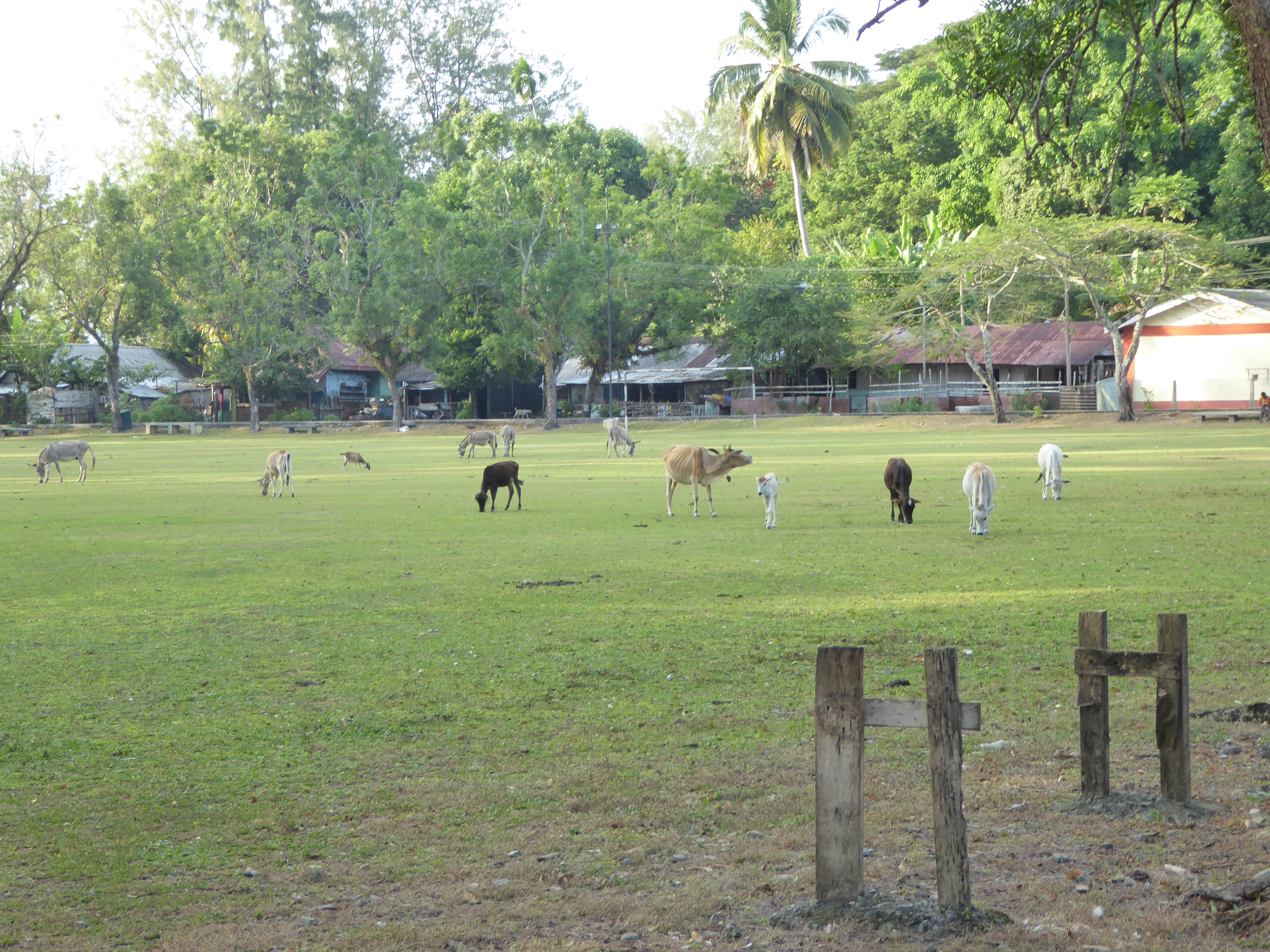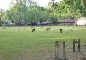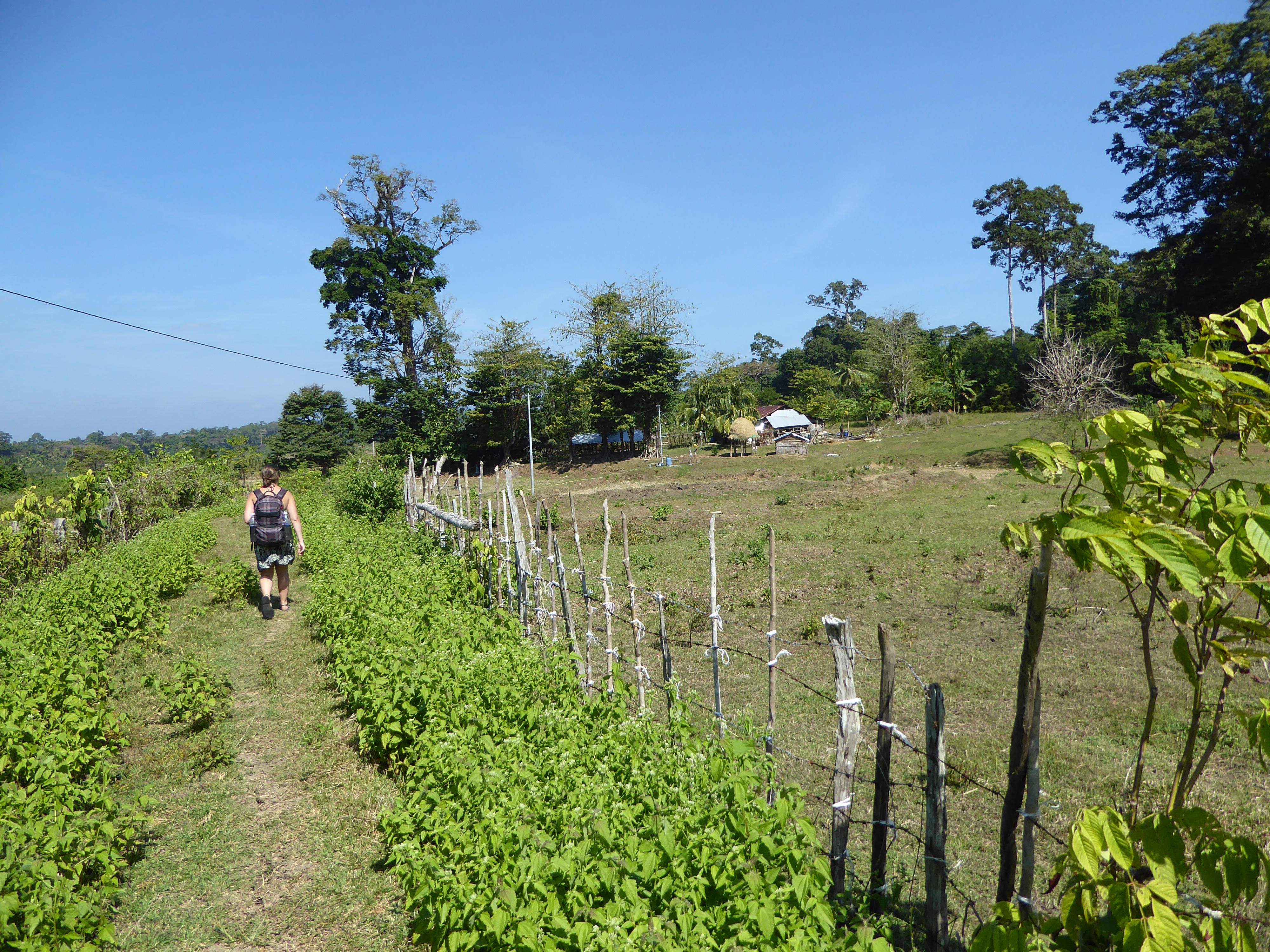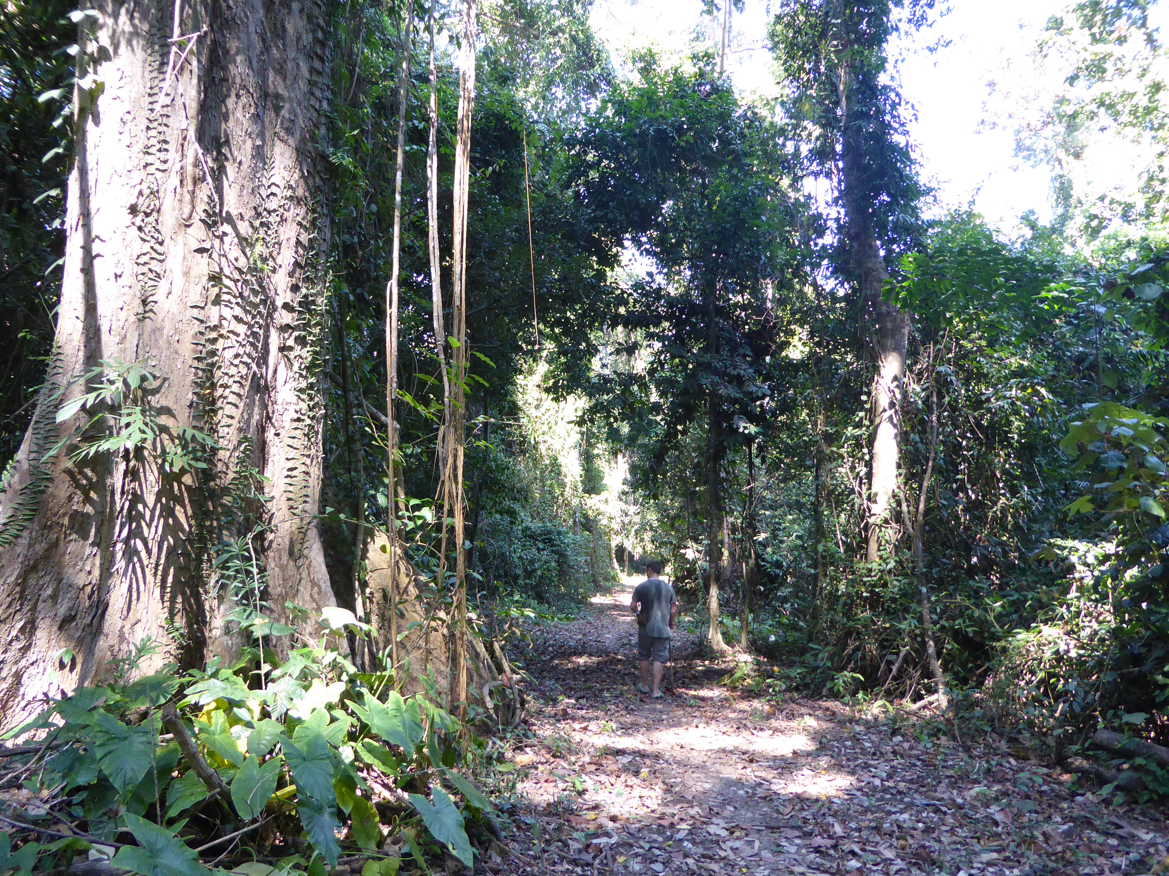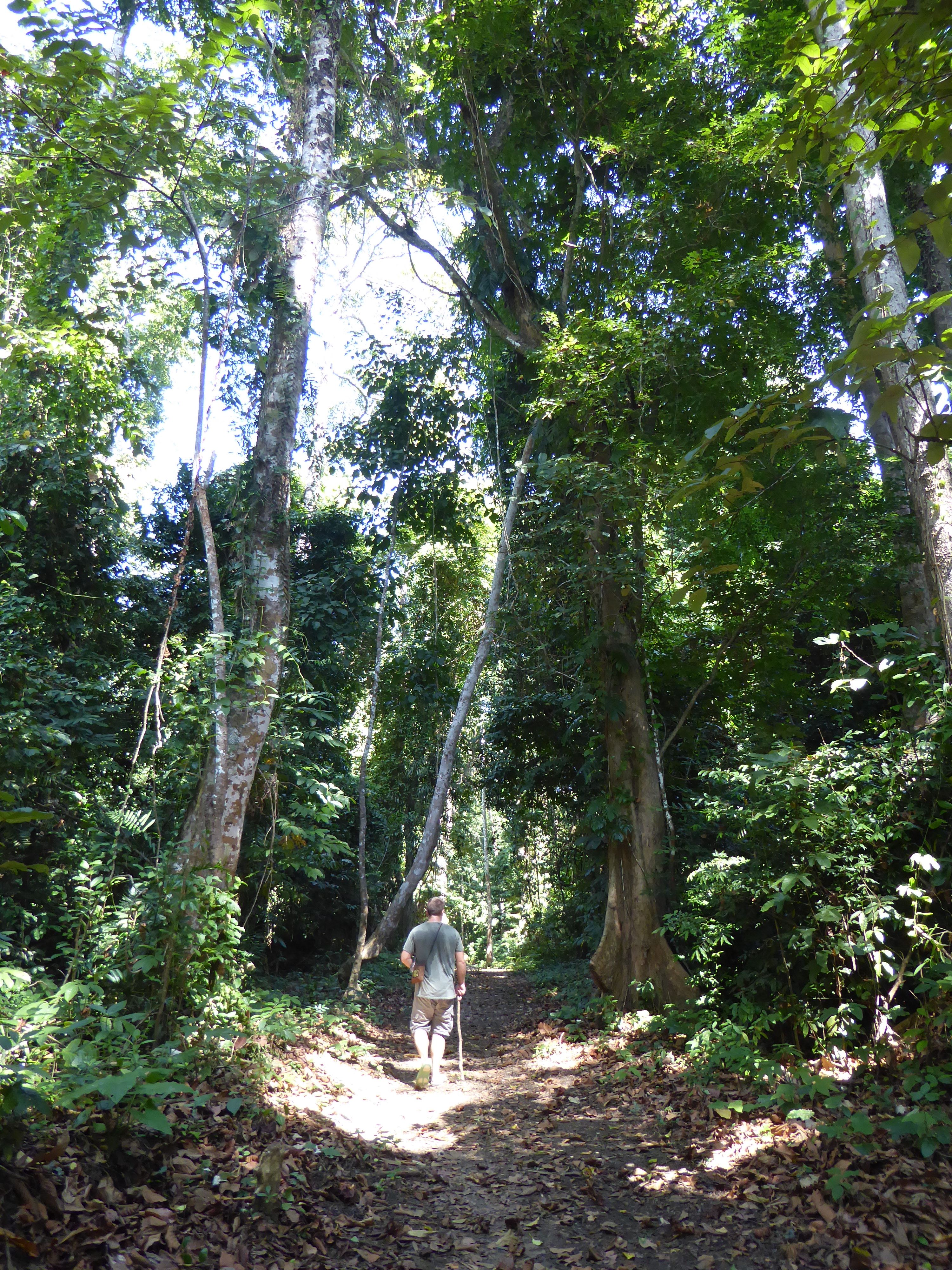 Dagen efter försökte vi komma upp tidigt, det gick sådär… men vi åt frukosten och fick med oss lite nerpackad lunch och citronvatten, sedan bar det iväg mot skogvaktaren igen. Den här gången var det öppet så vi kunde få vårt tillstånd och färden mot Lalaji beach kunde börja. Fredrik hade fått vattenblåsor på hela axlarna, från vårt solande på Kalapather Beach på Havelock, så jag försökte bära vår ryggsäck så mycket som möjligt. Det var målat röda pilar på gångarna som ledde till stranden så det var ganska så lätt att hitta. Först gick man en bra bit mellan olika gårdar. Det var ett fint jordbrukslandskap med diverse betande djur. När vi kom till gränsen mot djungeln, vid den sista gården, började en hund skälla på oss… inget konstigt med det utan vi fortsatte att gå. Den följde dock efter oss och fortsatte att skälla ilsket, vi öka takten lite men försökte ignorera hunden, tills han bet Fredrik i vaden! Av alla hundar som vi mött i Indien så har ingen varit aggressiv men denna ville verkligen inte ha oss där. Fredrik slog efter den med vattenflaskan och vi skyndade iväg. Som tur var blev det inget djupt sår utan mer ett riv men det hade gått hål på huden så det blödde lite.
