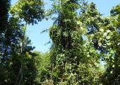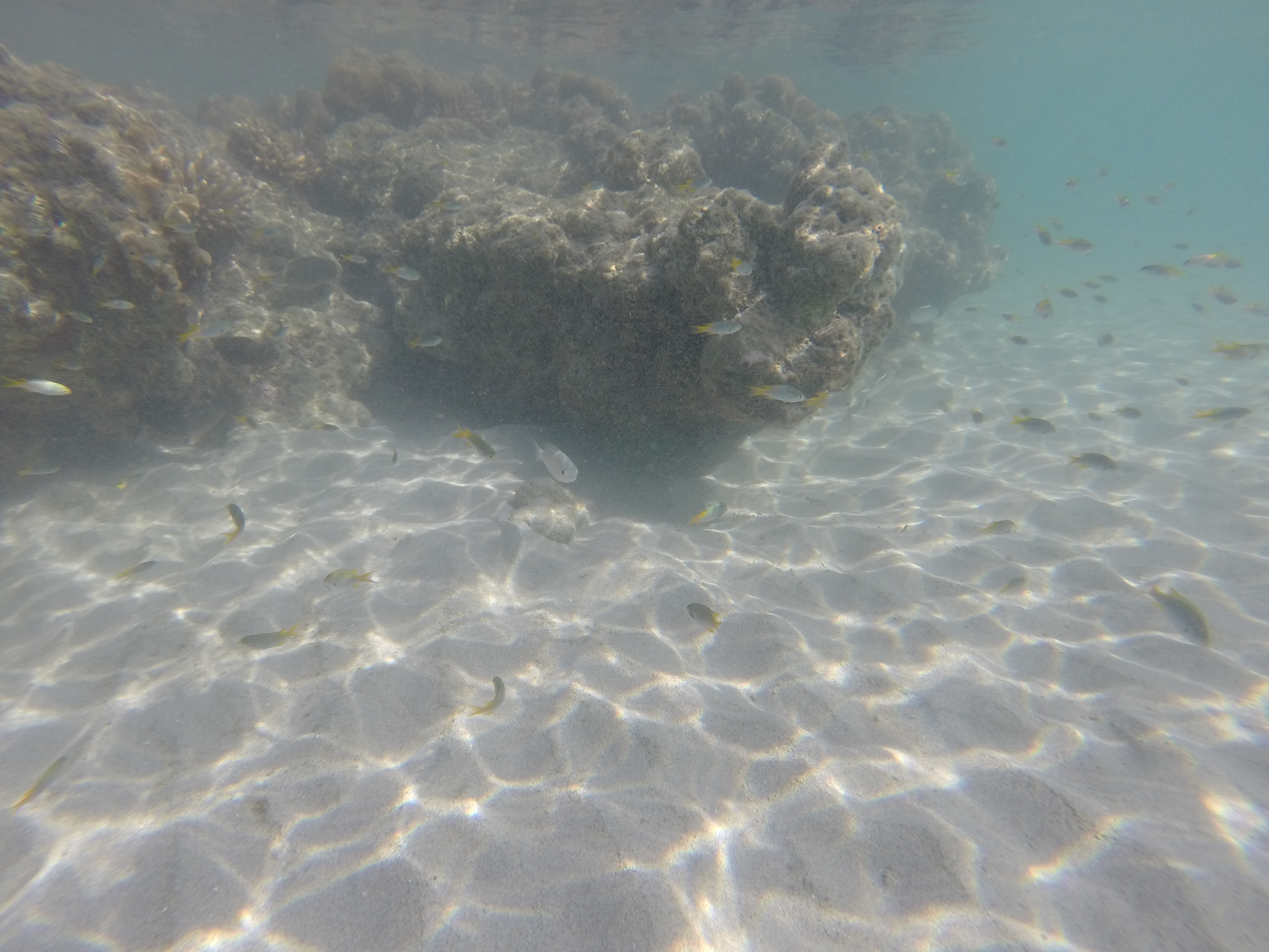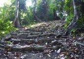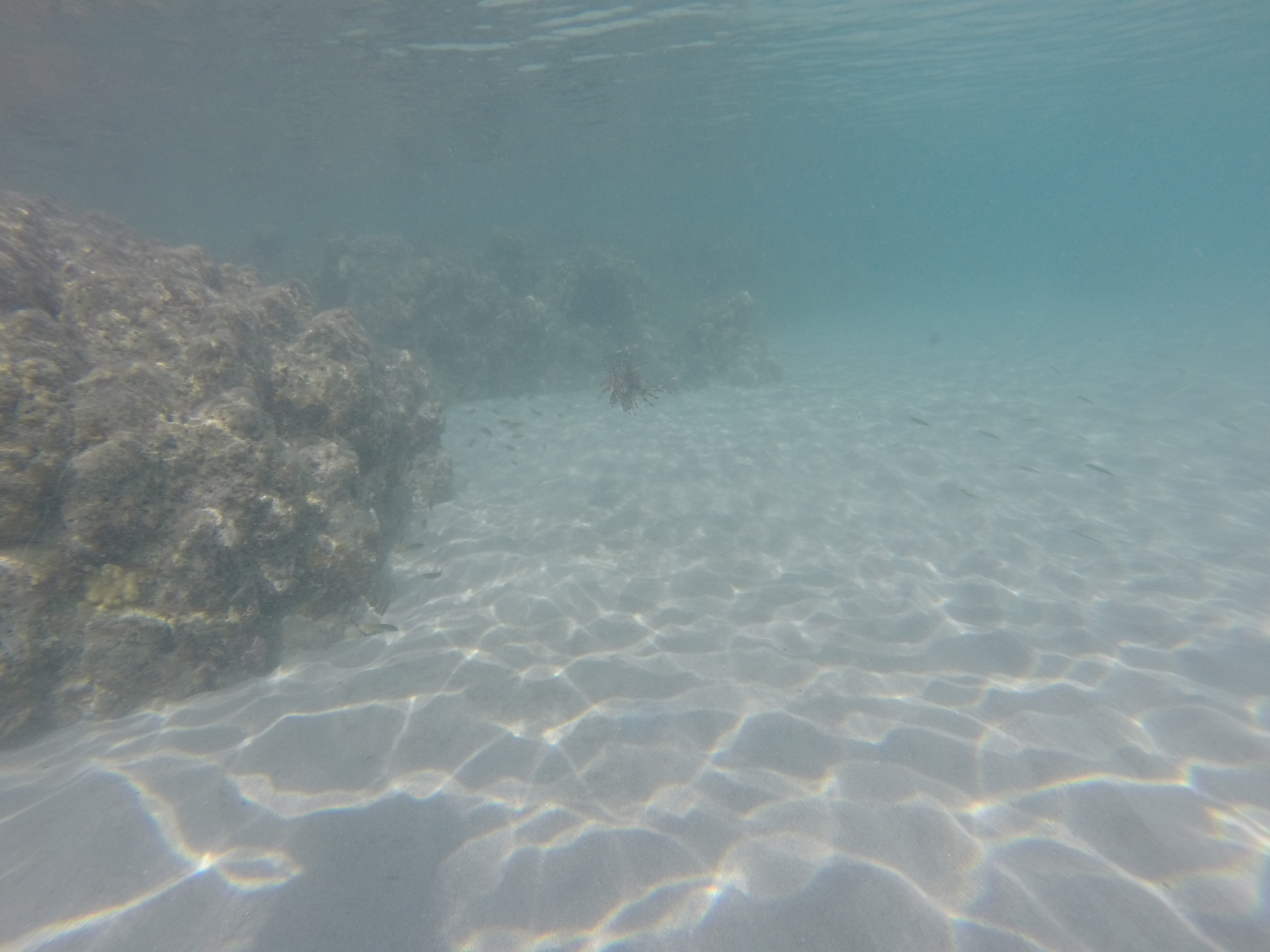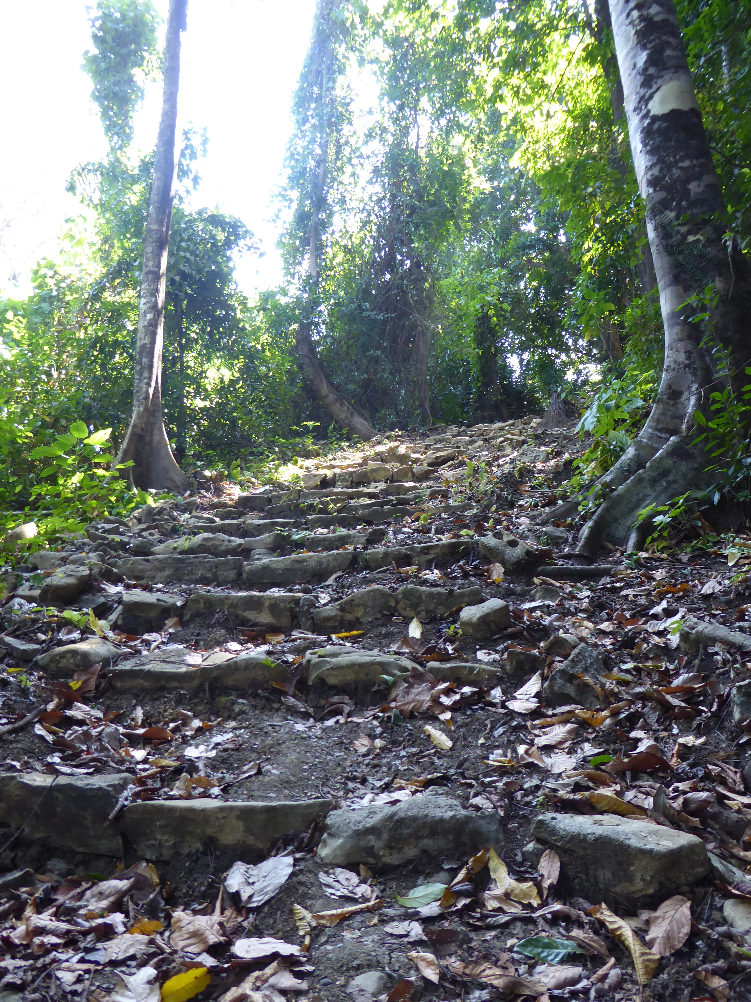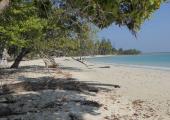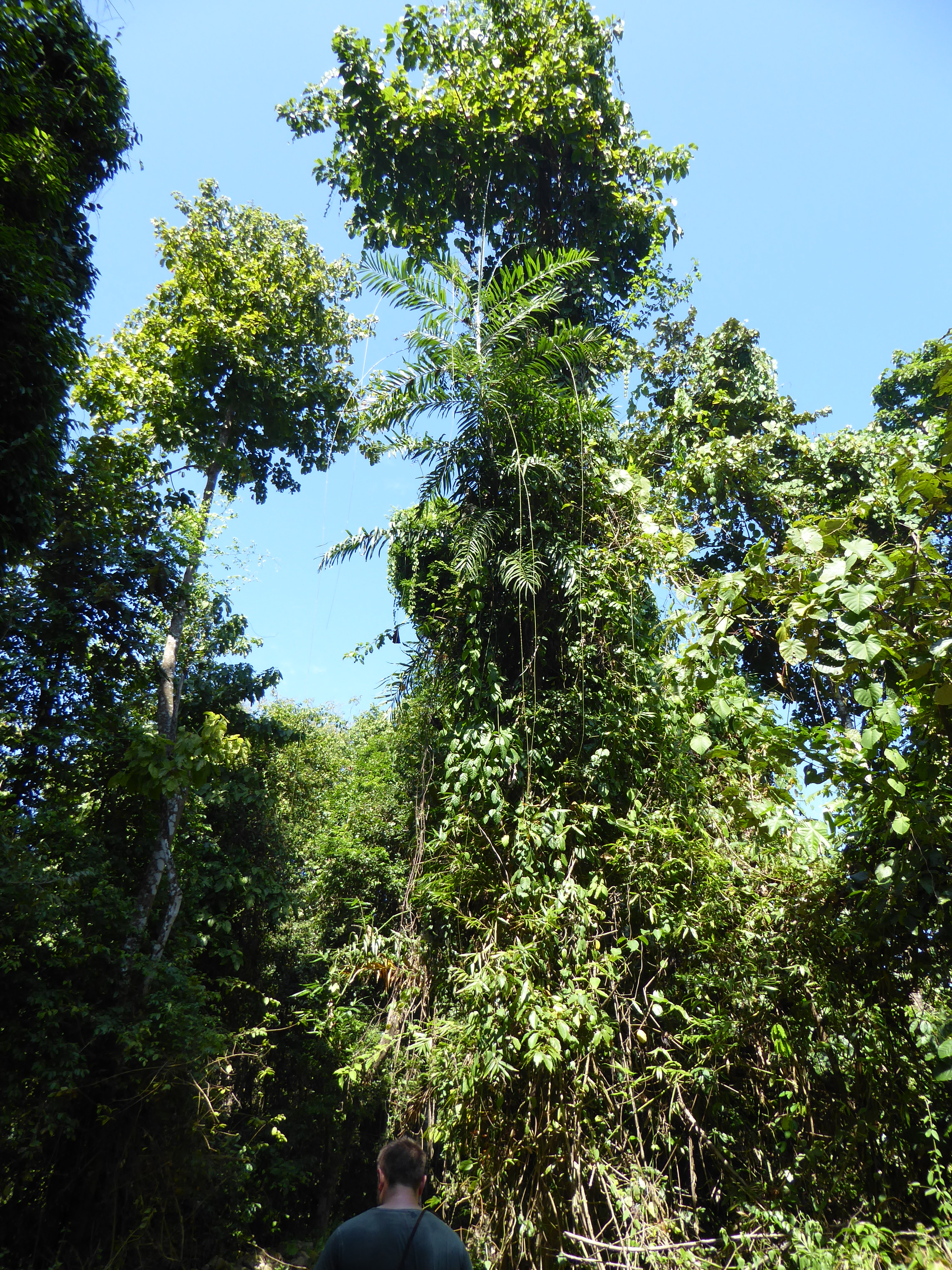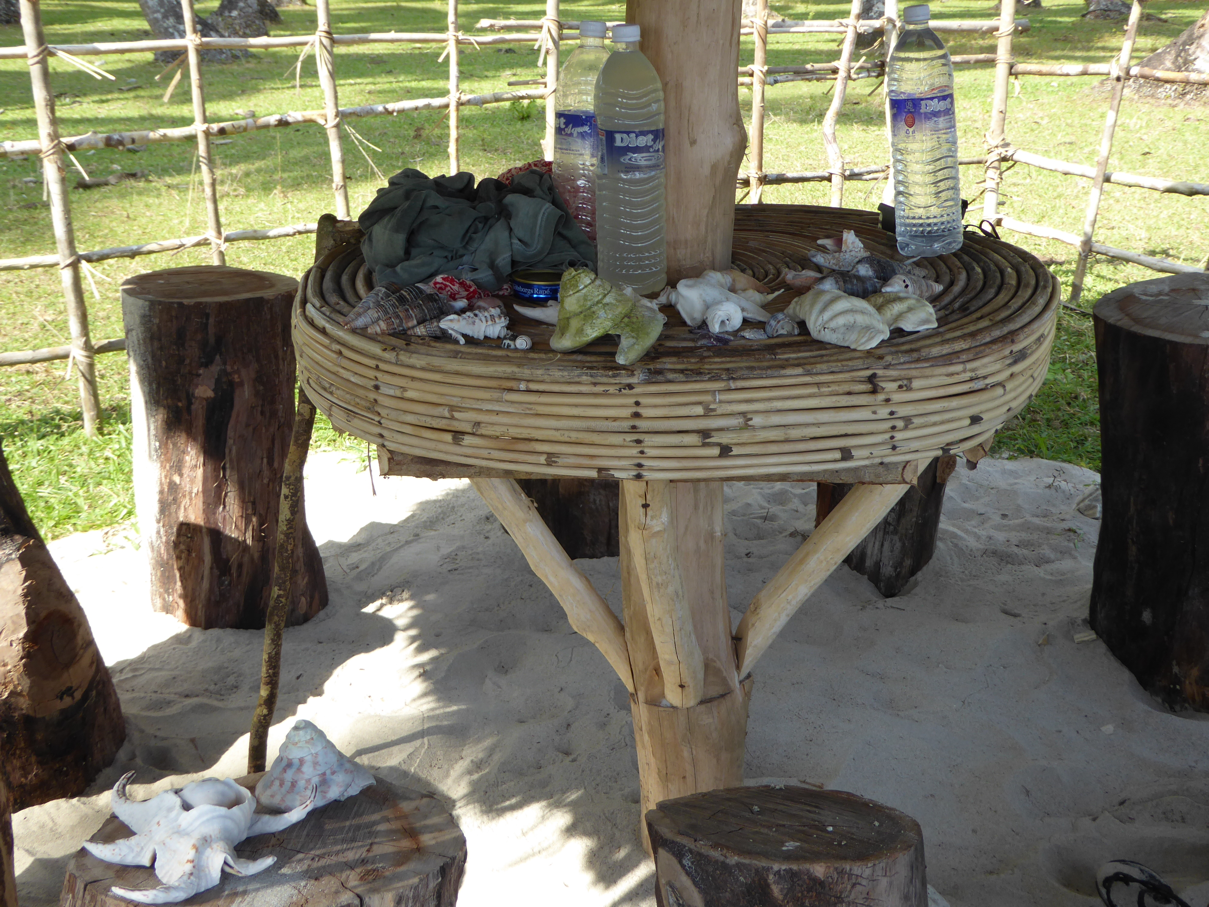 Vi fortsatte färden in i djungeln istället, det var tät, hög, orörd djungel. Riktigt mysigt och häftigt men det var ganska så långt att gå, det tog som sagt 2 timmar att ta sig hela vägen till stranden, men då gick vi inte speciellt snabbt. Till sist kom vi fram till stranden, en ganska lång fin sandstrand med ganska så mycket korallrester i sanden. Vi var nästan helt ensamma, vi var iaf de enda som höll sig på stranden och badade. Det var uppbyggt små bord med tak över som vi satte oss vid och sedan gick jag och badade. Jag kom inte längre än ner till vattnet innan jag hittat jätte stora fina snäckor i sanden. Att leta snäckor är ett av mina stora nöjen på semestern. När vi hade ätit upp vår matsäck fortsatte jag att leta snäckor längs med strandkanten. Det fanns så många och så stora snäckor så det inte var klokt! Jag har aldrig sett så stora snäckor på en strand innan, väldigt roligt! Så det kunde jag underhålla mig med i flera timmar. Innan vi gick därifrån så snorklade jag lite längs med ett rev på sidan av stranden. Det var klart och fint vatten och några koraller. Det hade dock hunnit bli så mycket lågvatten så det var lite svårt att snorkla. När jag simmade runt där stötte jag på två drakfiskar så då backade jag undan, de är giftiga och jag ville inte gärna bli stungen av dem här när vi hade 2 timmar tillbaka till civilisation.