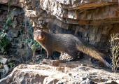 Mungon bor gärna i skrevor i klippiga områden eller i en hög bråte i bebyggt område. Den är som mest aktiv på dagen och sover på nätterna.
