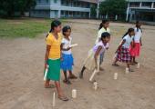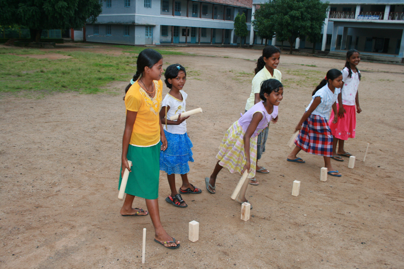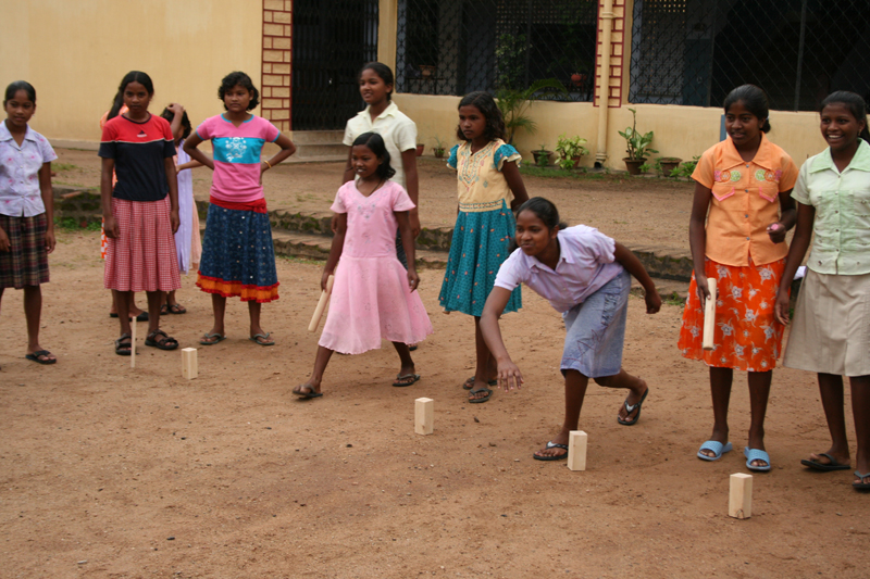 Efter ”Tea” var det dags att introducera kubb i Indien, eller i varje fall i Khunti. Jag hade nämligen tagit med ett kubbspel som jag gav bort till flickorna på hostellet. Snacka om att detta blev en succé! Efter en kort introduktion så kom spelet igång. De snappade upp tekniken nästan på en gång och redan efter ett par omgångar spelade de minst lika bra som vilken Svedala-bo som helst. Efter ytterligare ett tag hade de även lärt sig lite taktik och de följande timmarna blev till en väldigt uppsluppen stund ute på skolgården. Som tur var det uppehåll just då i monsunregnen.
