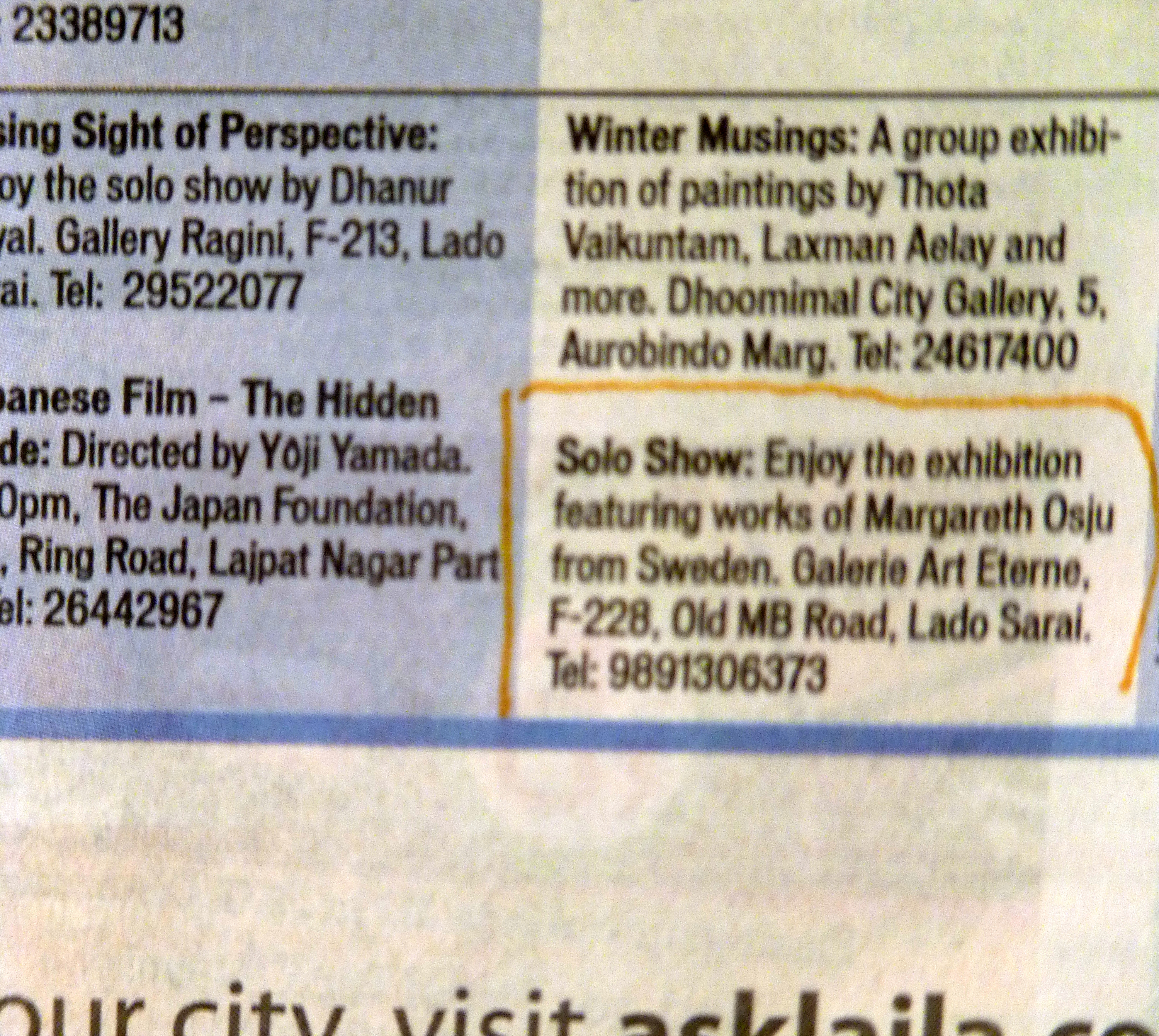Indien har ett fascinerande och pulserande konstnärsliv vilket jag har tagit till vara och besökt de många antal gallerier som finns både på Lado Sarai, Hauz Khaz och andra ställen runt om i New Delhi.