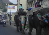 Ca 250 km och vi är inte framme förrän kl 18-19. Ta bort 5 timmar som vi lunchat o sightseeat så har vi 7 timmar ren körtid för 25 mil på motorväg. men det kan ju inte gå särskilt fort när det kommer en hjord bufflar lunkande i motsatt riktning. Vi ser elefanter om än tama med en gammal skäggig man eller liten 10-årig pojk där uppe bakom öronflapparna. Idag är de alla dekorerade. Det är ju festligheter på gång. Apor ser man ibland.
