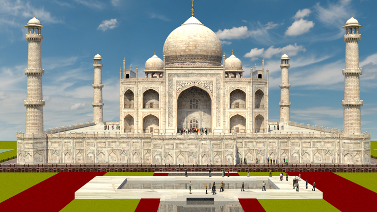 Hej, Är det nån som vet om det är nån trappa nånstans ovanför ingången på framsidan av Tajmahal? Jag återupptog igår ett gammalt 3D-projekt på Tajmahal som bara legat och samlat damm och tänkte försöka få den klar så snabbt som möjligt. 90% klart i alla fall och bara småsaker kvar. Det är inget gjort på insidan och funderar på hoppa över det. Geometrin har varit pain in the neck att göra på tajmahal , ett fel och det börjar fela massor på andra ställen helt plötslig!. Det felar lite här o där fortfarande men bara småsaker som kan justeras sen. Plantor, träd, buskar blommor vatten gräs osv ska på plats också men annars är det nästan klart. Jag har varit däruppe men minns inte hur man tog sig upp riktigt och har inga bild som visar nåt. Här e ett par bilder och på bild kan man se ingång på sidorna på framsidan. Måste ju finnas en trappa eller hur tog man sig upp? Undrar också om nån har några bra bilder på mönster, detaljer och annat som kan vara intressant att försöka få med.